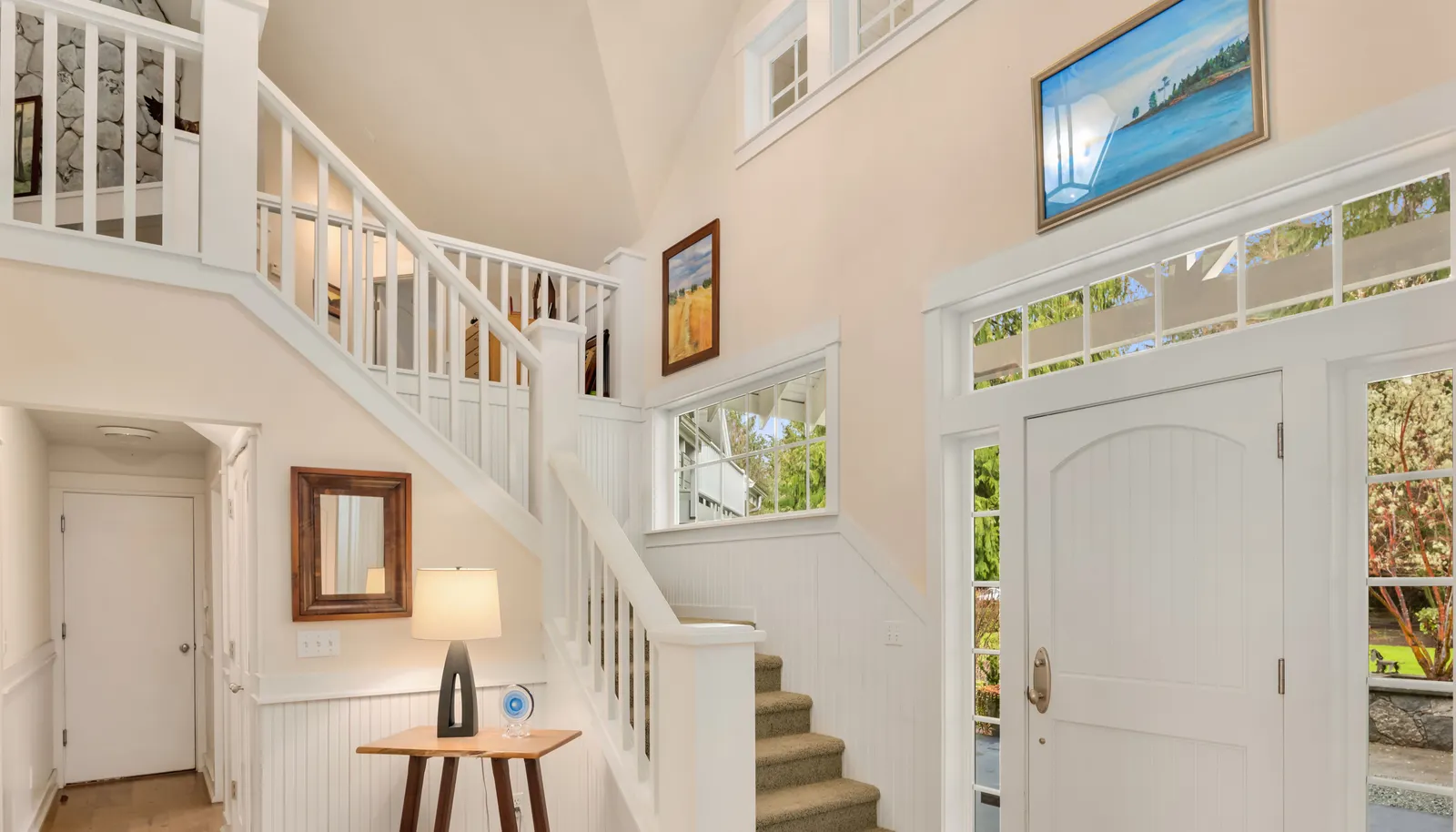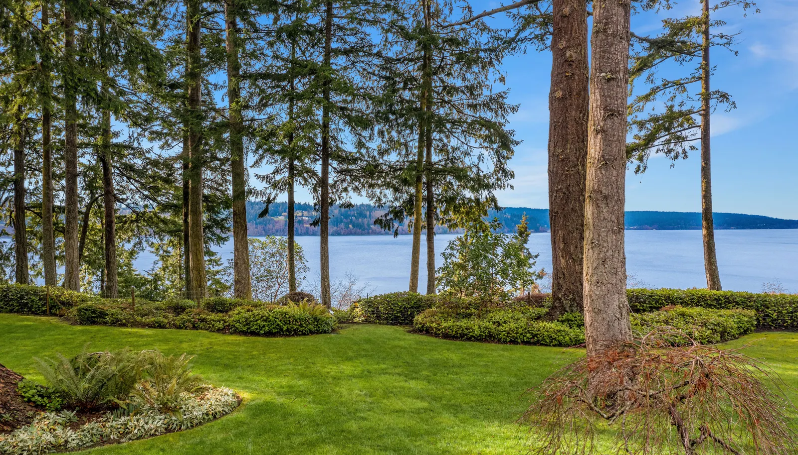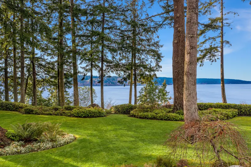 Perched on shy 5 acres, peering down the center of Holmes Harbor. Simply stunning.